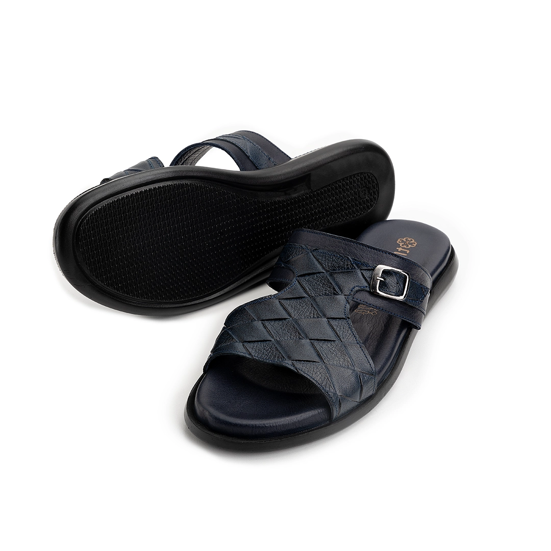 ترکیب چرم طرحدار با رنگ‌بندی متنوع جلوه‌ای خاص و همه‌پسند به دمپایی بخشیده است.
