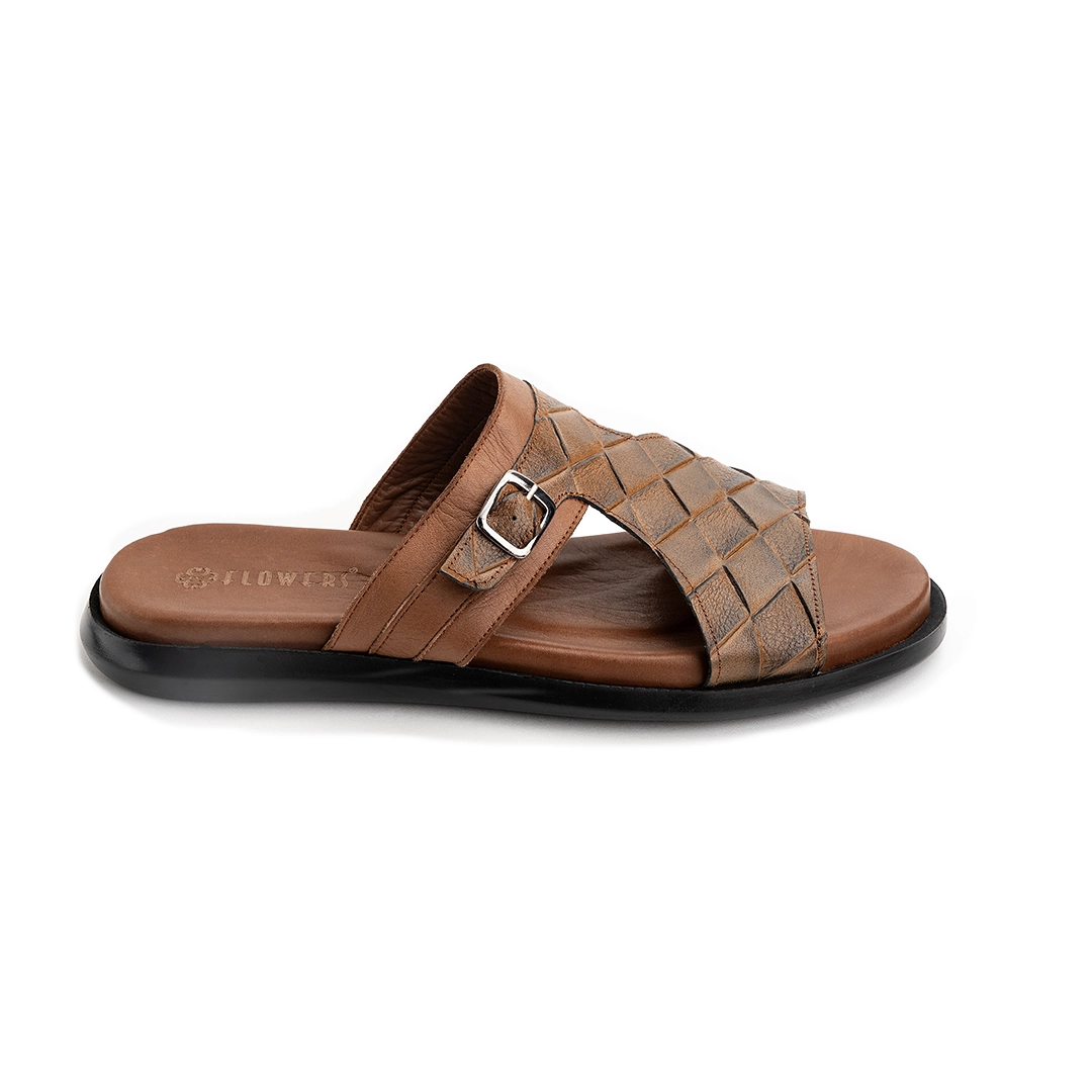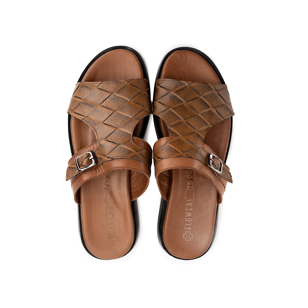 رویه دمپايی مردانه چرم کد 2960 از چرم گاوی طرحدار ساخته شده که علاوه بر زیبایی ظاهری، دوام بالایی دارد. آستر داخلی نیز از چرم گاوی طبیعی است تا پا در طول روز احساس راحتی کرده و جریان هوا در دمپایی به خوبی برقرار شود.