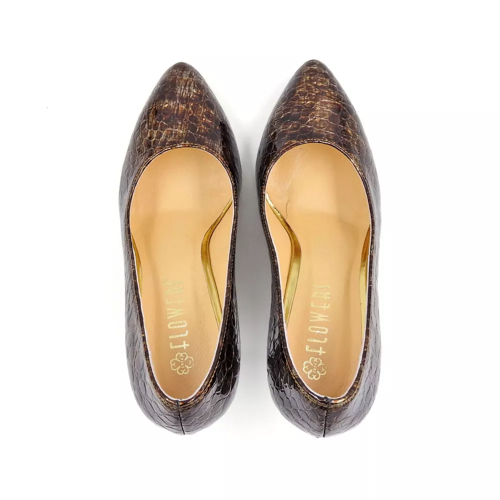 کفش زنانه استیلتو کد 1020 با رنگ برنز تالسیکا، ساختهشده از چرم طبیعی گاوی با آستر نرم و زیره داووس مقاوم؛ مناسب مجالس رسمی با پاشنه ۷ سانتیمتری و طراحی شیک و لوکس.