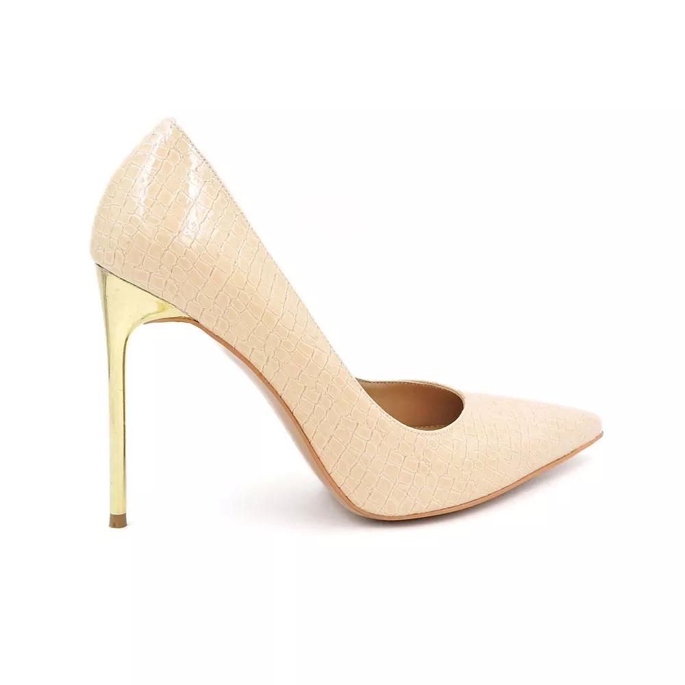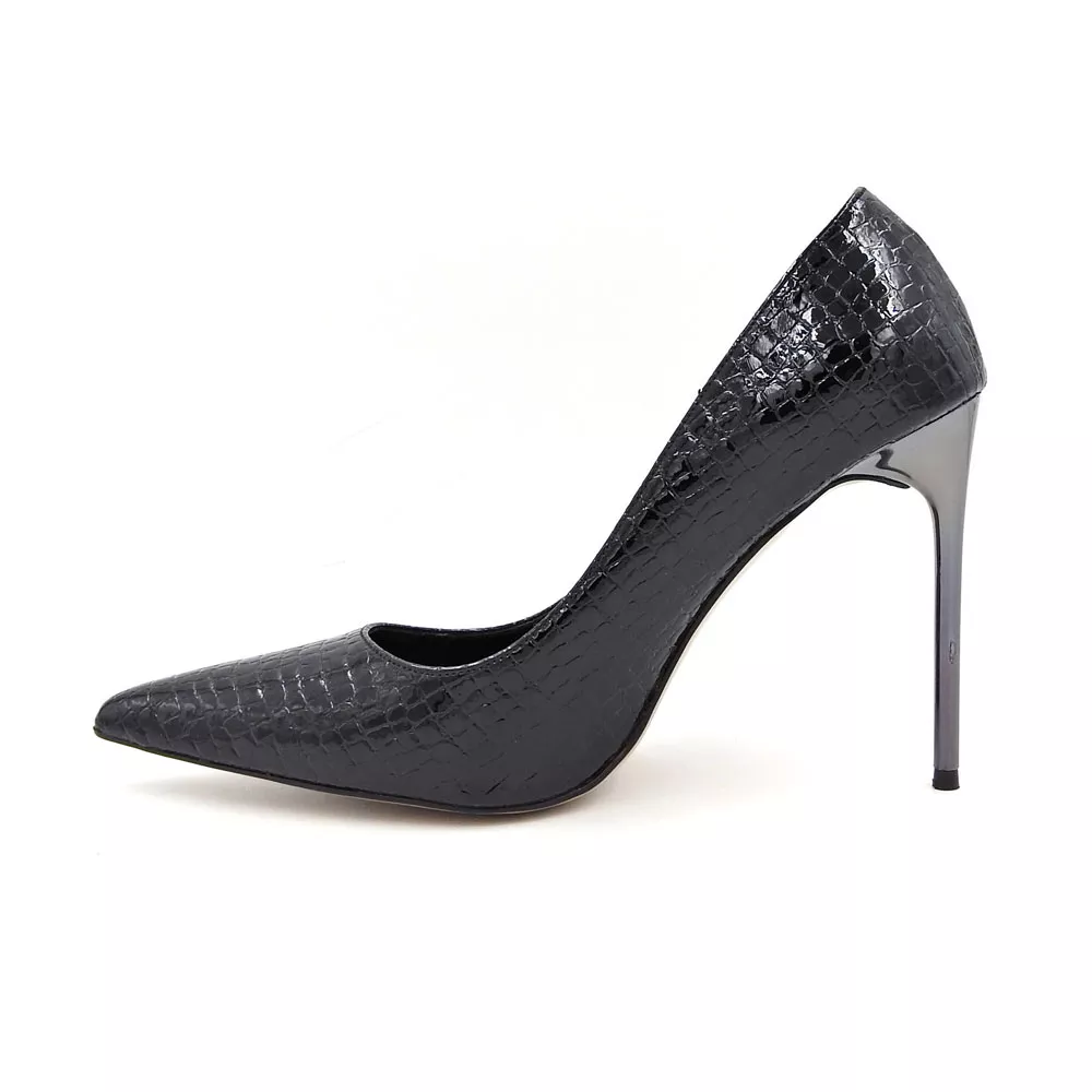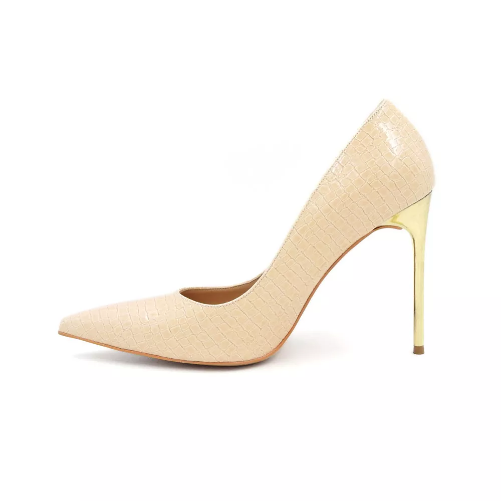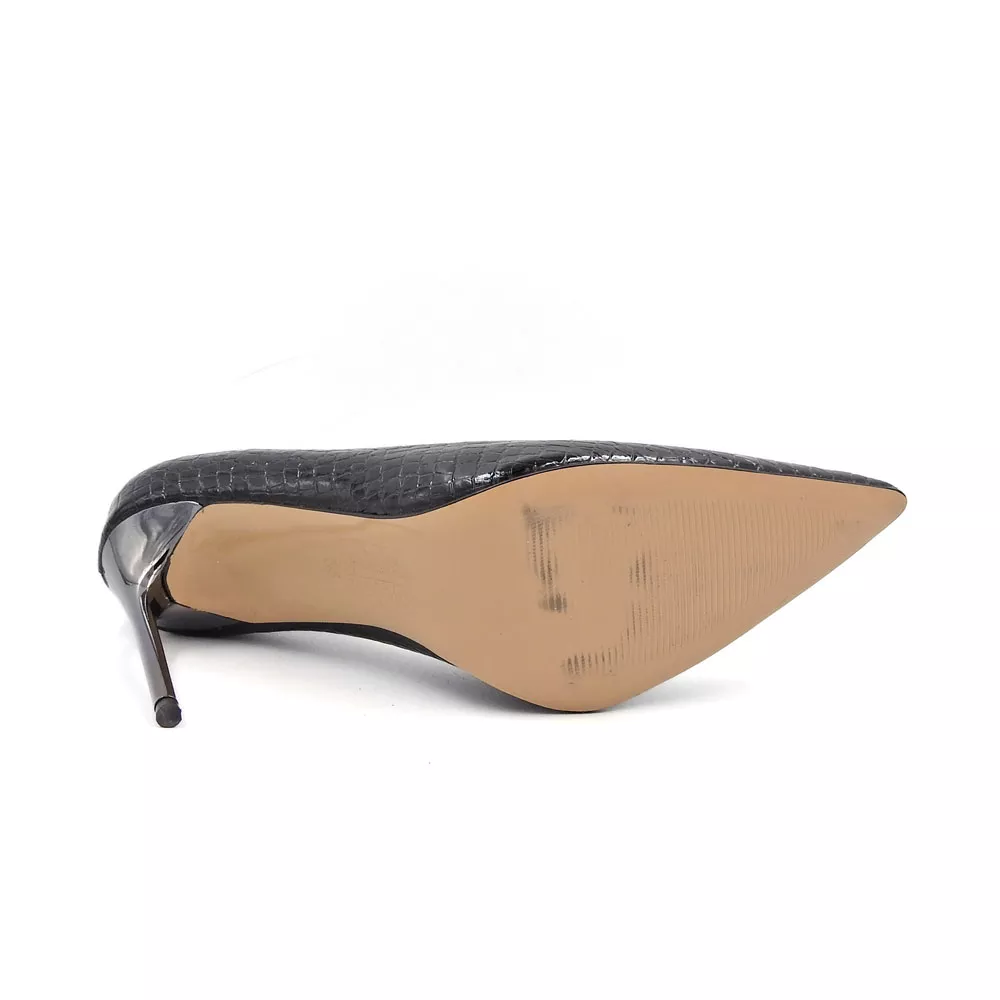 رویه کفش زنانه استیلتو کد 1297 از چرم مصنوعی با طرح پوست ماری ساخته شده است که ظاهری لوکس، متفاوت و چشمگیر دارد. بافت ظریف طرح، در کنار درخشش ملایم سطح چرم، جلوهای سهبعدی ایجاد میکند که در نور سالنهای مجلسی، برق خاصی به خود میگیرد. این طراحی نهتنها جلوهای مدرن دارد بلکه حس اعتمادبهنفس و قدرت را در هر قدم منتقل میکند.