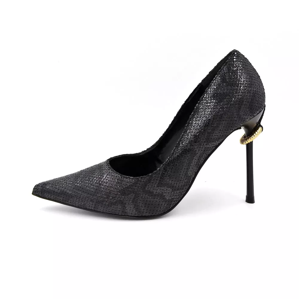 - ماهیت استیلتو بودن این کفش، نشاندهنده طراحی ظریف و پاشنه بسیار باریک آن است که برای افزودن به قد و ایجاد استایلی فشن و رسمی مناسب است.