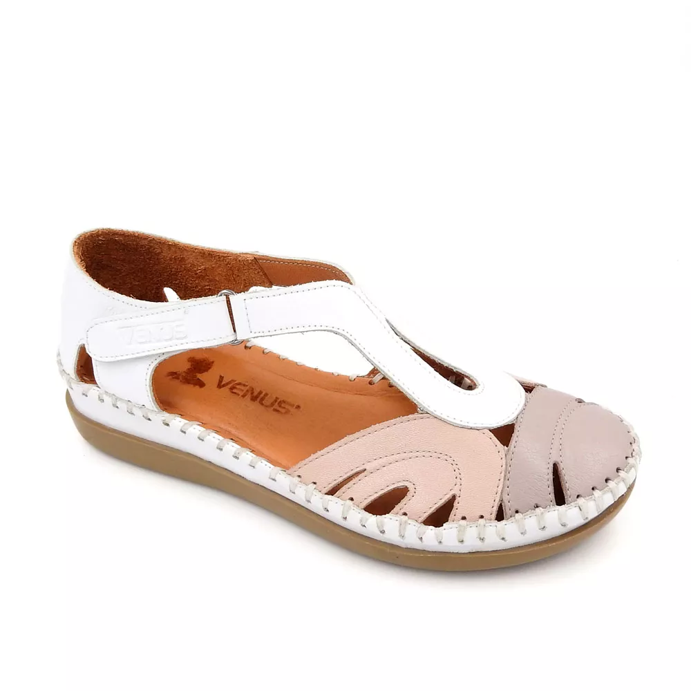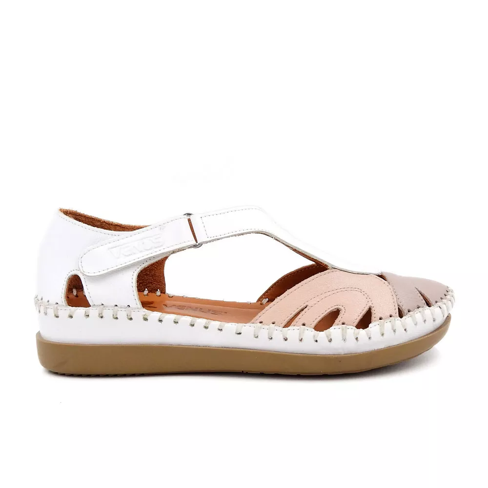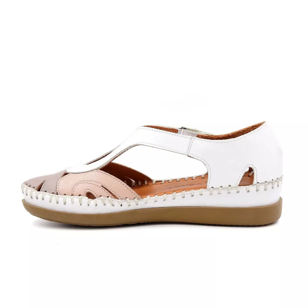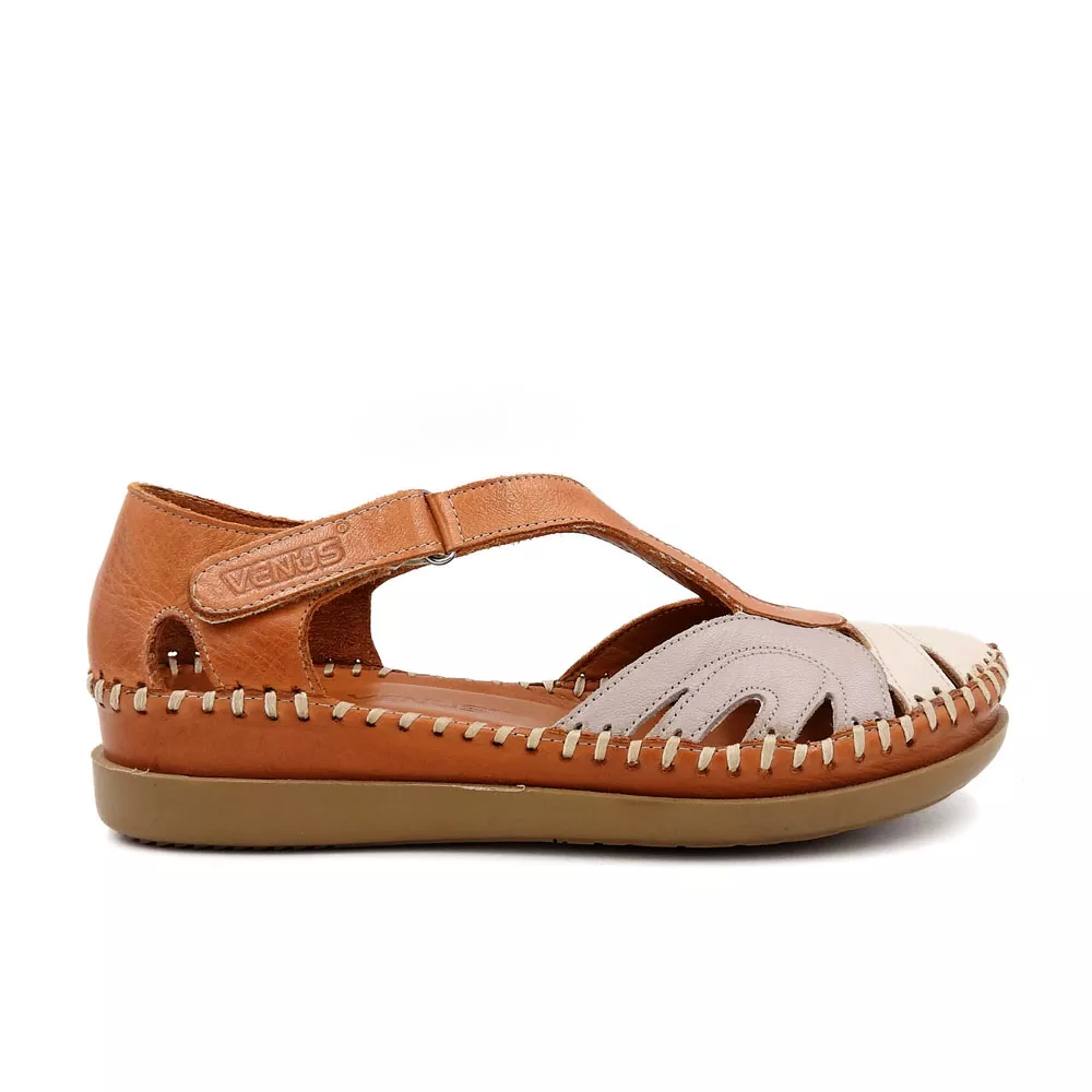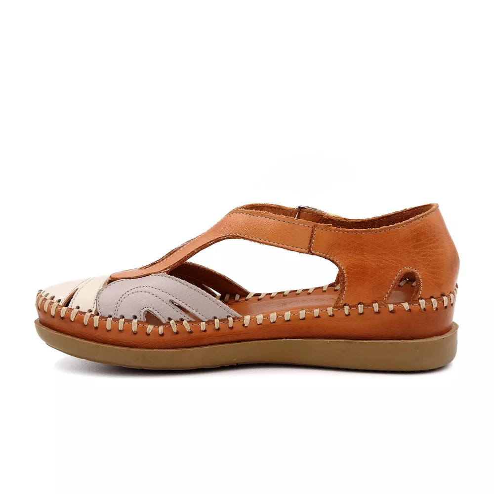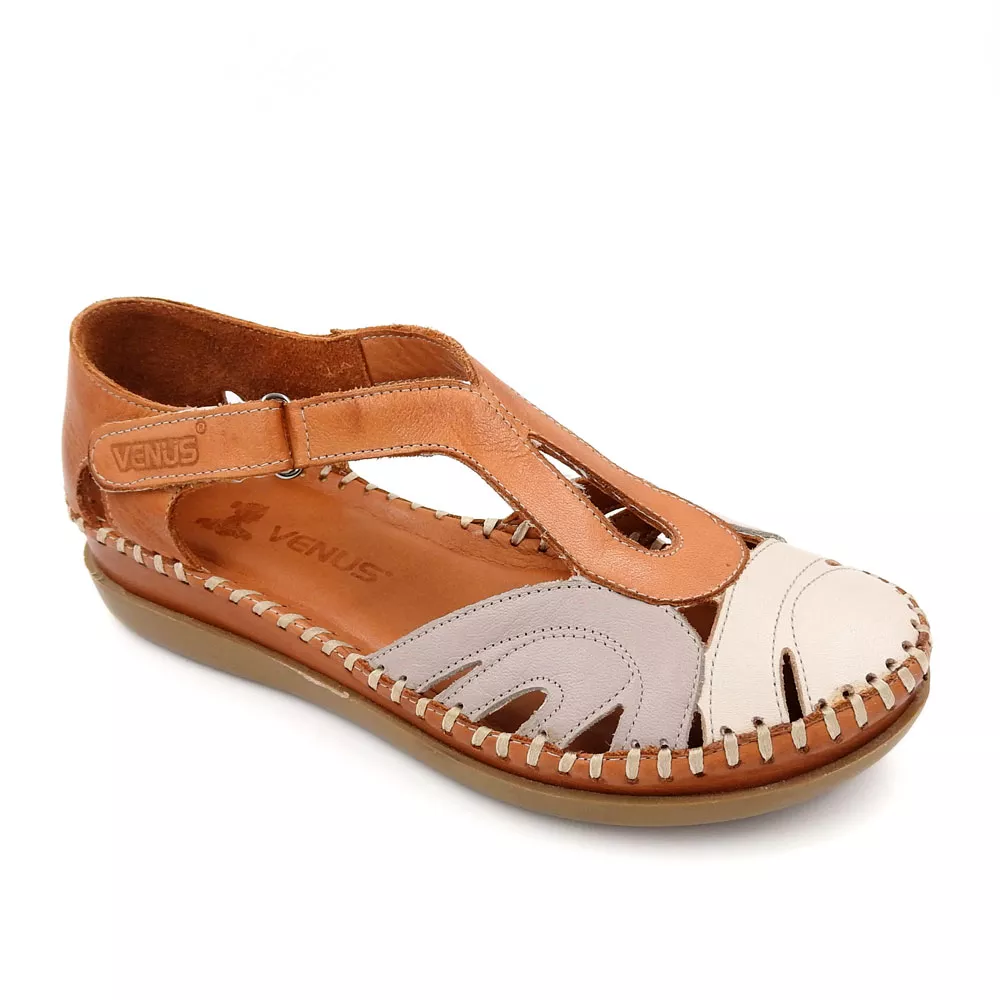 کفش زنانه تابستانی کد 1274 با طراحی باز و ترکیب رنگی دل‌نشین، از چرم طبیعی گاوی ساخته شده و با زیره TPU ضدلغزش و قالب طبی، انتخابی عالی برای روزهای گرم و استفاده طولانی‌مدت است.