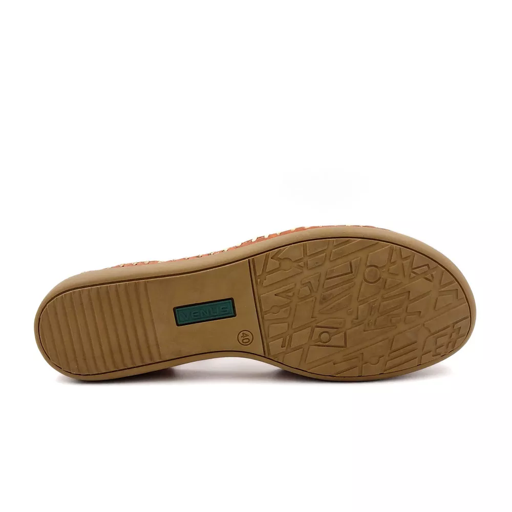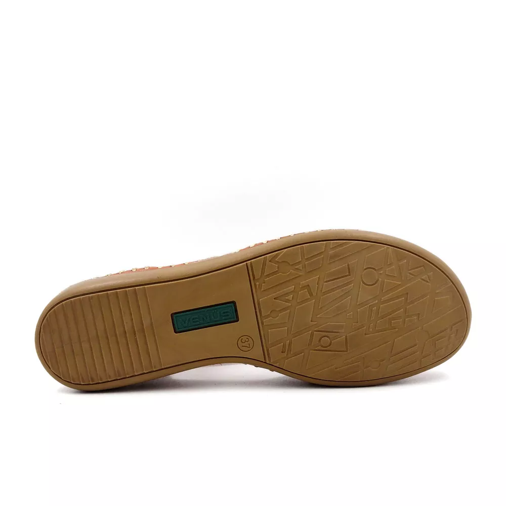قسمت جلویی کفش زنانه تابستانی کد 1274 با دوخت دستی ظریف تزئین شده که علاوه بر زیبایی، به افزایش دوام و استحکام محصول کمک می‌کند. این نوع دوخت که با رنگ متضاد انجام شده، حس اصالت و کار دستی را به‌خوبی منتقل می‌کند و نشان از دقت بالای تولید دارد.