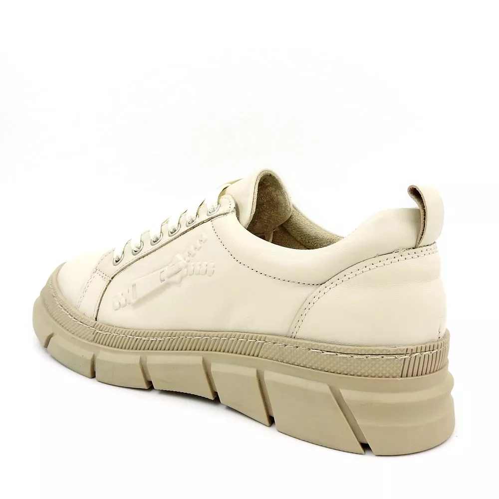 بندهای مقاوم در قسمت رویه، امکان تنظیم فیت پا را فراهم کرده و در عین حال با حلقههای فلزی محکم، استحکام و دوام طولانی را تضمین میکنند. طراحی پاشنه و پنجهی کفش به شکلی است که با فرم طبیعی قوس پا هماهنگ بوده و مانع از لغزش پاشنه درون کفش میشود.