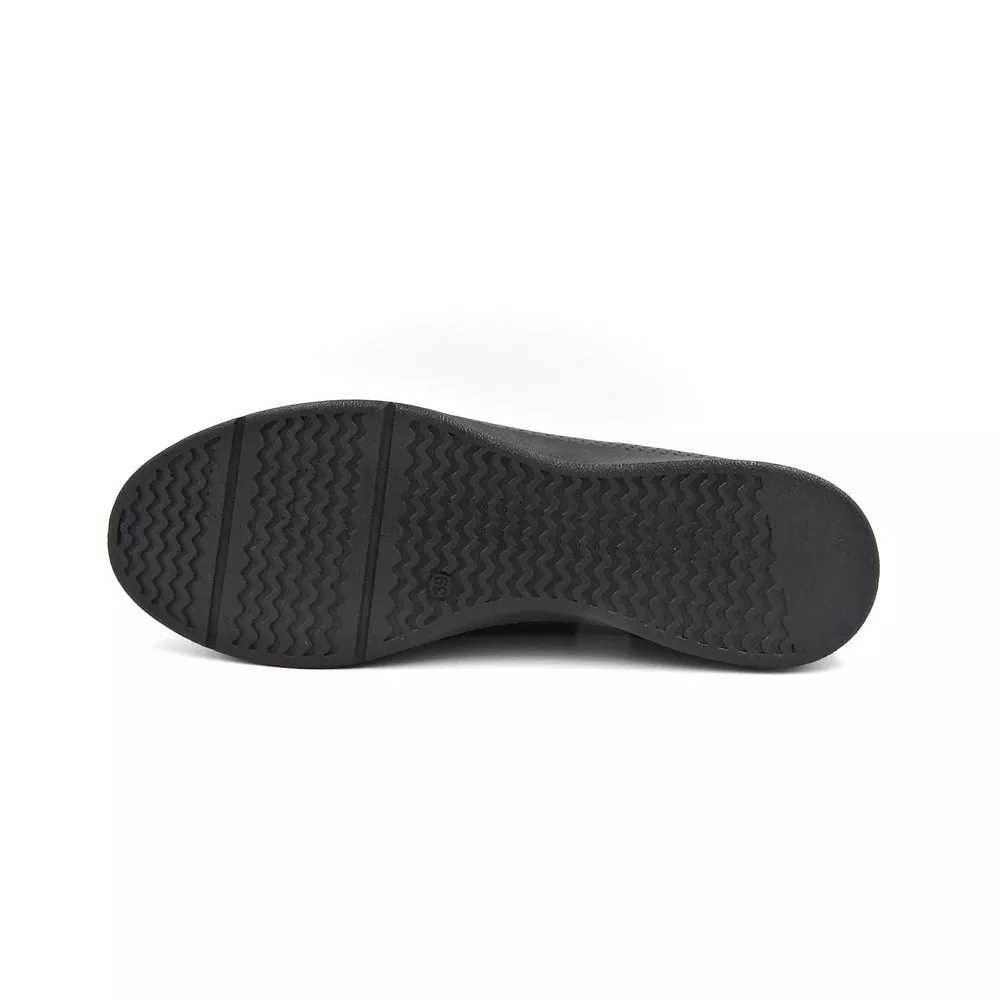 آستر داخلی کفش نیز از چرم طبیعی گاوی انتخاب شده است تا تماس مستقیم آن با پوست پا احساس لطافت و نرمی ایجاد کند. چرم آستر بهصورت ضدحساسیت و ضدتعریق طراحی شده و باعث میشود حتی پس از ساعتها پوشیدن کفش، پا احساس خستگی یا داغی نکند. در بخش کف داخلی نیز از چرم طبیعی گاوی نرم استفاده شده که خاصیت ارتجاعی مناسبی دارد و با هر قدم، فشار وارد بر پا را جذب میکند.