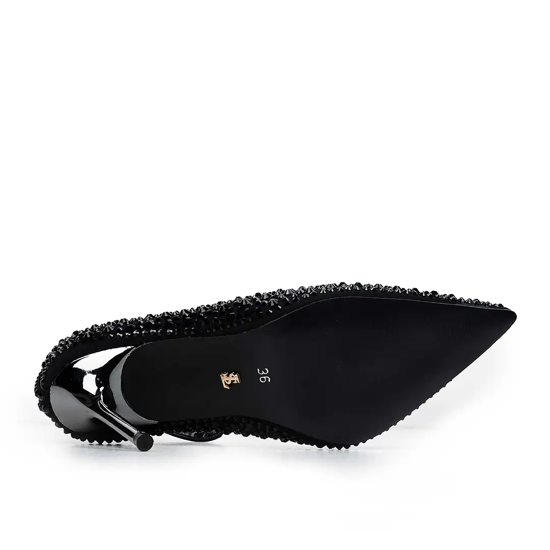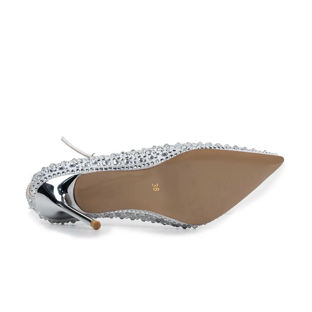 کفش زنانه مجلسی تمام نگین کد 1454 در دو رنگ پرطرفدار مشکی و نقرهای عرضه میشود.