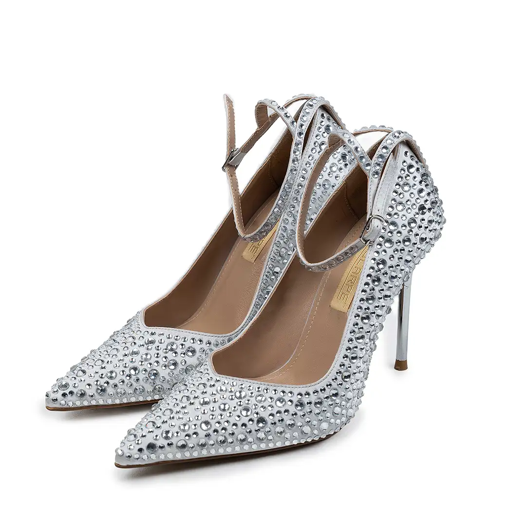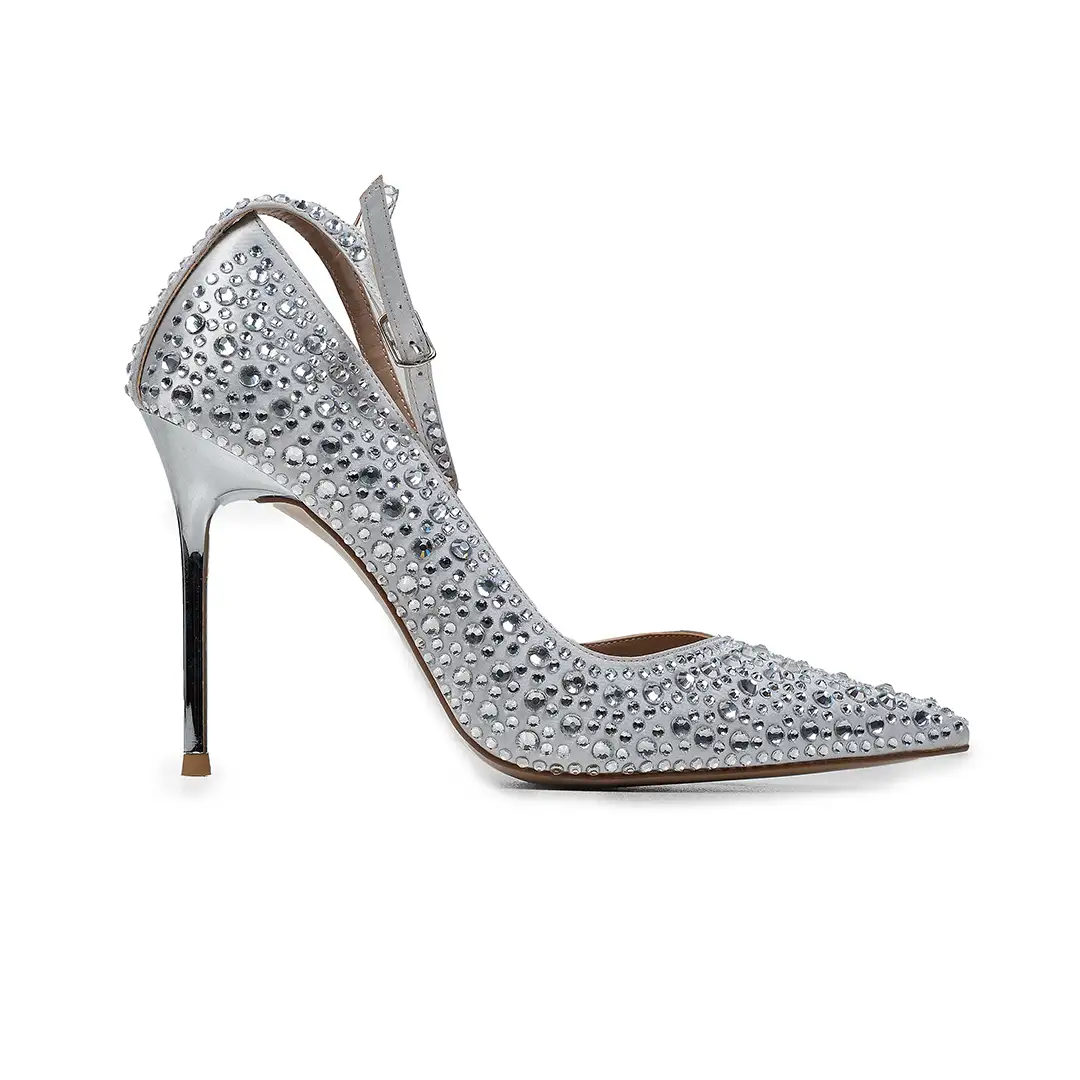 کفش زنانه مجلسی تمام نگین کد 1454 انتخابی بینظیر برای عروسیها، جشنها، مهمانیها و مجالس شبانه است. طراحی تمام نگین و پاشنه بلند آن، ظاهری مجلل و خاص به استایل شما میبخشد. این مدل بهخوبی با لباسهای مجلسی بلند، دامنهای ساتن یا لباسهای شب سنگدوزیشده ست میشود و در هر مجلس، جلوهای فراموشنشدنی دارد.