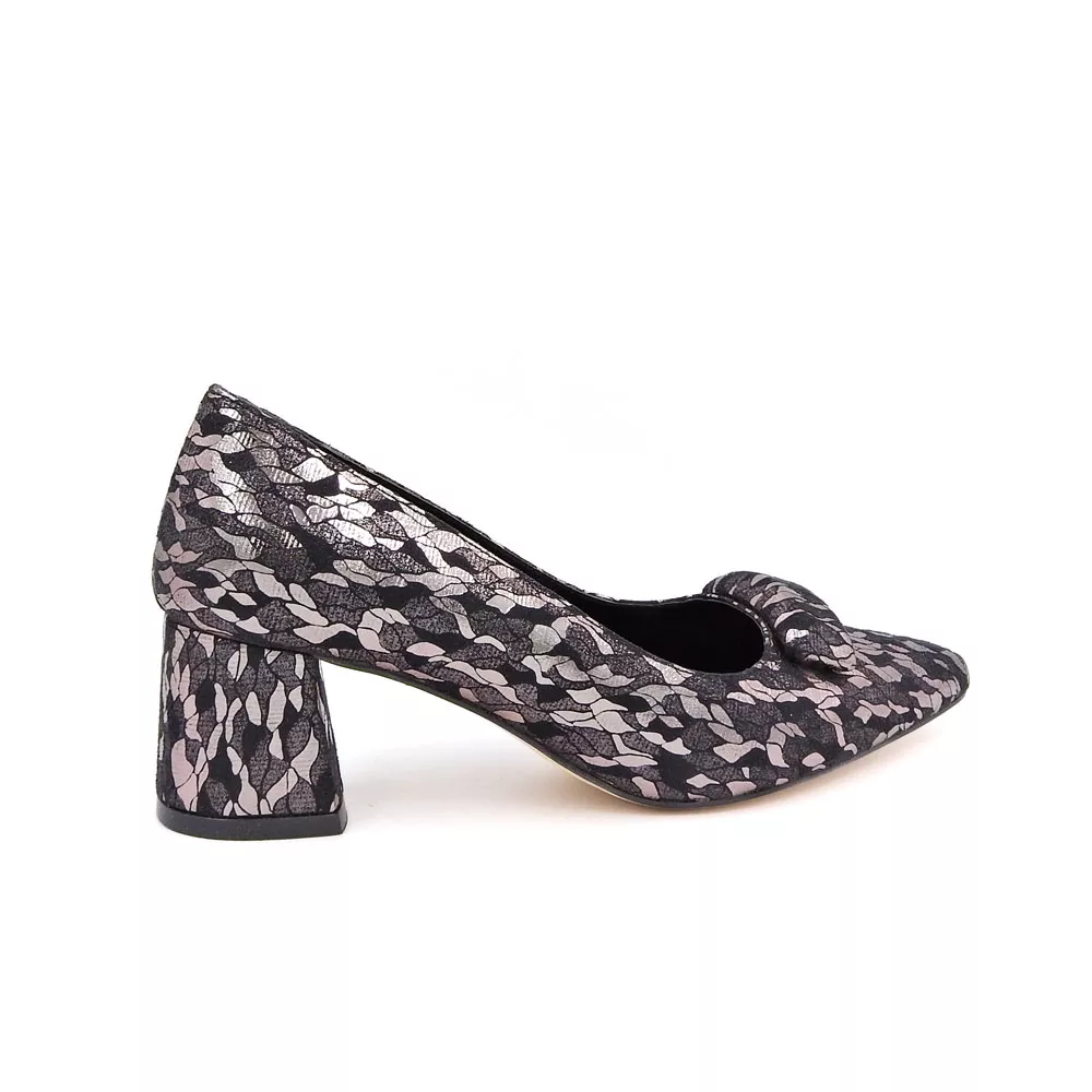 پاشنهی کفش زنانه مجلسی کد 1219 با ارتفاع ۴ سانتیمتر طراحی شده است تا توازن ایدهآلی میان زیبایی و راحتی برقرار کند. این ارتفاع استاندارد، ضمن حفظ فرم شیک کفش، فشار را از کف پا کاهش داده و تعادل بدن را در هنگام راه رفتن حفظ میکند. شکل مربعی پاشنه با طرح مشابه رویه، جلوهای هماهنگ و یکپارچه به طراحی کفش بخشیده است.