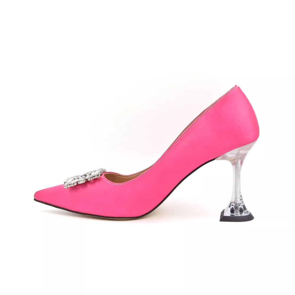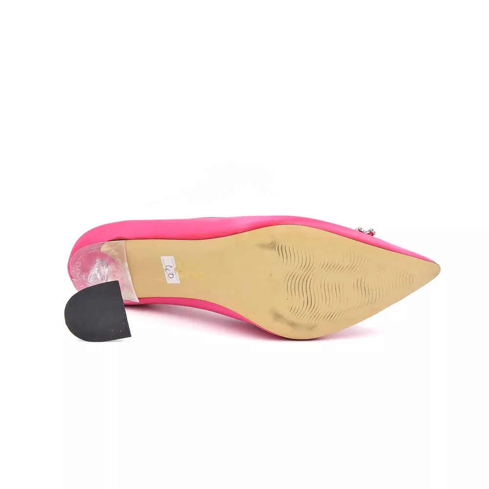 کفش زنانه مجلسی کد 1236 با رنگ سرخابی و پاشنه ۷ سانتی، تلفیقی از جسارت و زیبایی است. رویه ساتن درخشان، سگک کریستالی و پاشنه فلزی مجسمهای، جلوهای خاص و لوکس به استایل شما میبخشد.