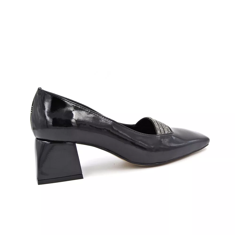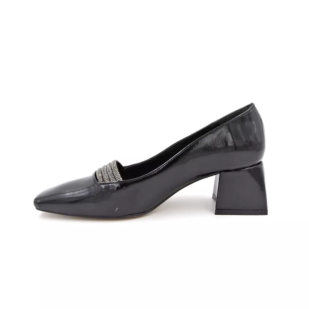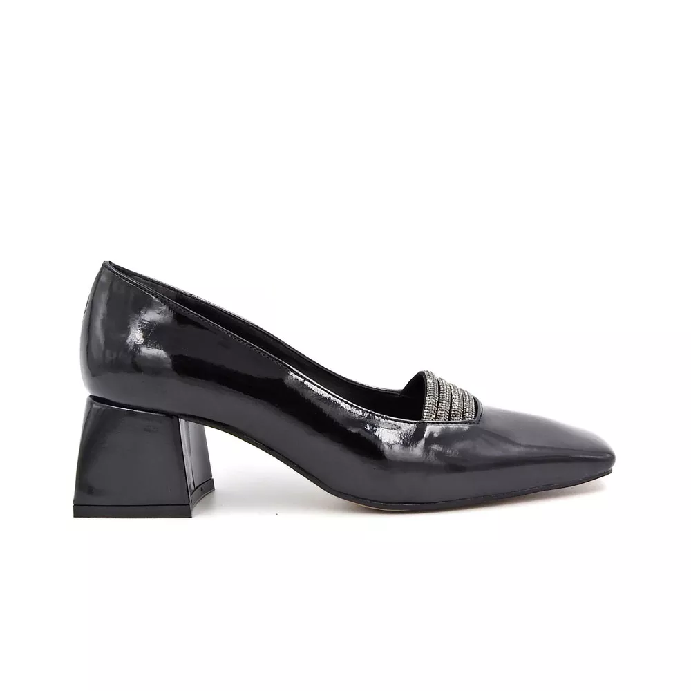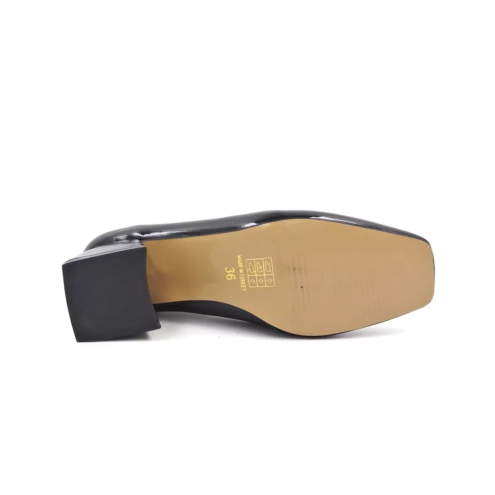 رنگ مشکی نابوک و مشکی ورنی این مدل، جذابیت و هماهنگی بی‌زمانی دارد. این دو نوع پرداخت چرم مصنوعی، تضادی لطیف و در عین حال چشم‌نواز ایجاد کرده‌اند که استایل کفش را از یکنواختی خارج می‌کند. بافت نابوک در قسمت رویه با ظاهری مات و لطیف، حس لوکس و طبیعی به کفش می‌دهد، در حالی‌که قسمت‌های براق‌تر در جزئیات و تزئینات، جلوه‌ای درخشان و رسمی ایجاد کرده‌اند.