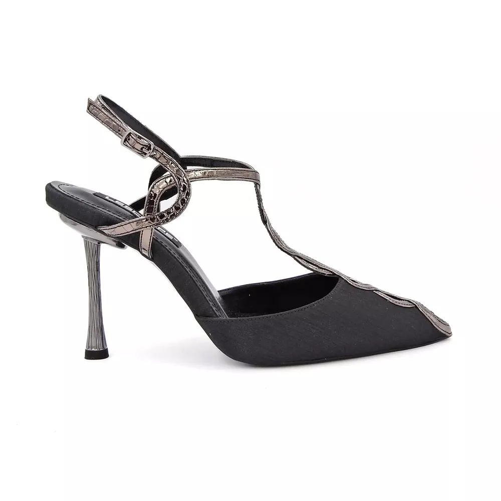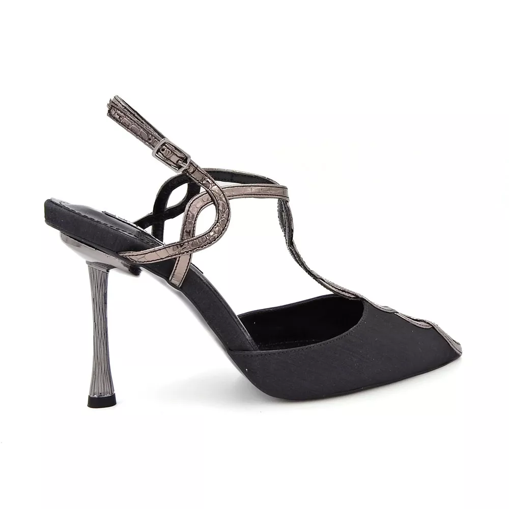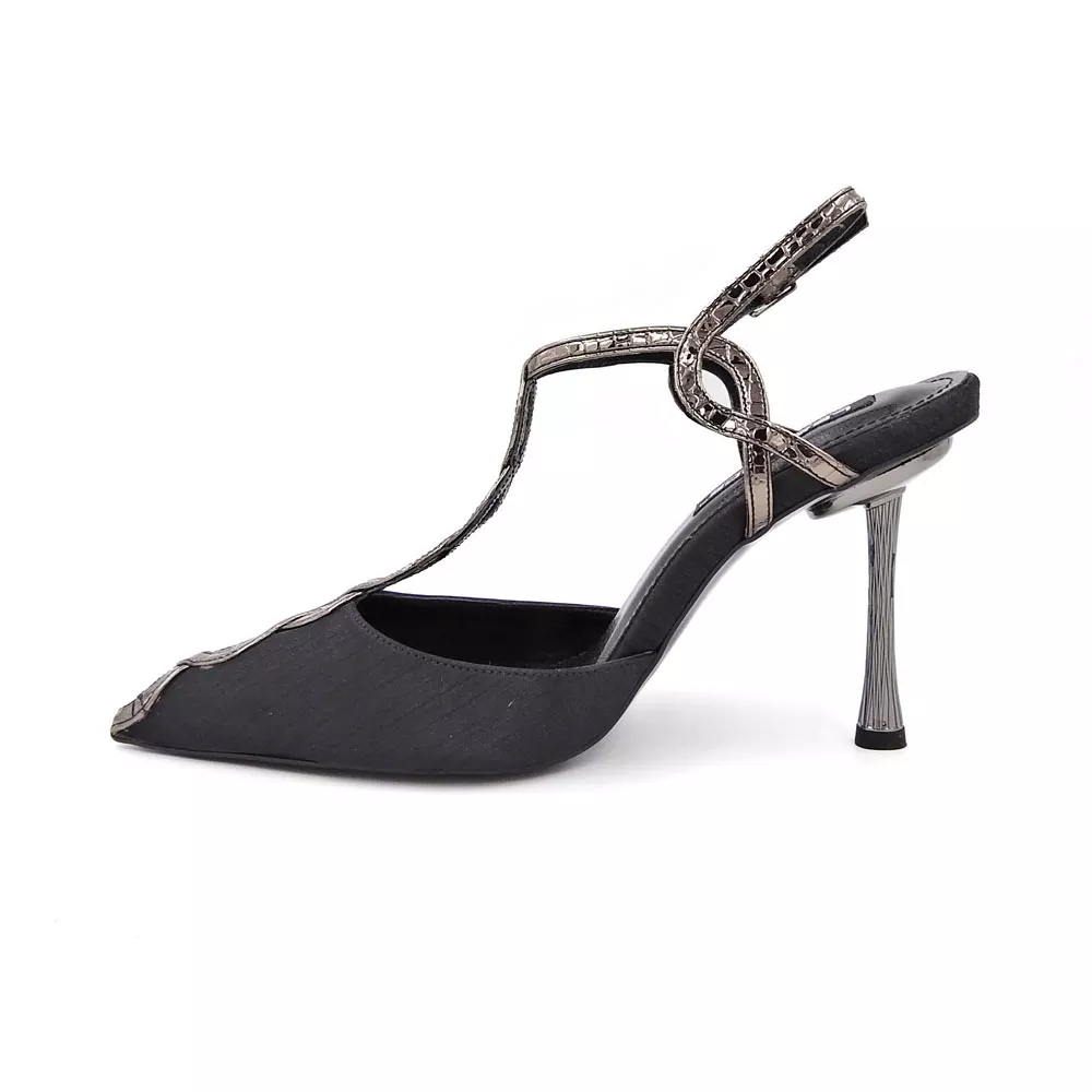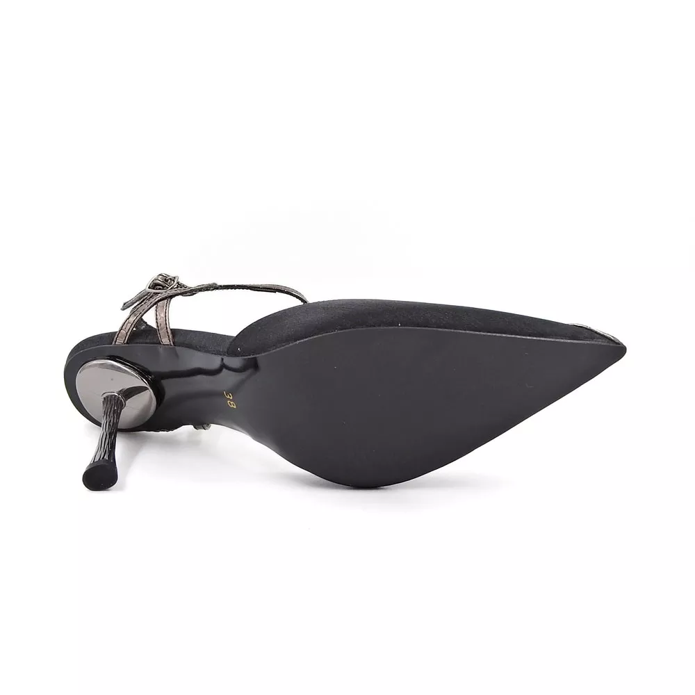 کفش زنانه مجلسی کد 1357 تلفیقی از ظرافت کلاسیک و طراحی مدرن است. بندهای طلایی ظریف، پاشنهی خوشفرم ۷ سانتیمتری و رویهی ساتن براق، جلوهای لوکس و چشمگیر ایجاد کردهاند که مناسب مجالس، مراسم و مهمانیهای خاص است. این کفش، انتخابی فوقالعاده برای بانوانی است که به دنبال زیبایی، اعتمادبهنفس و درخشش در هر جمعی هستند.