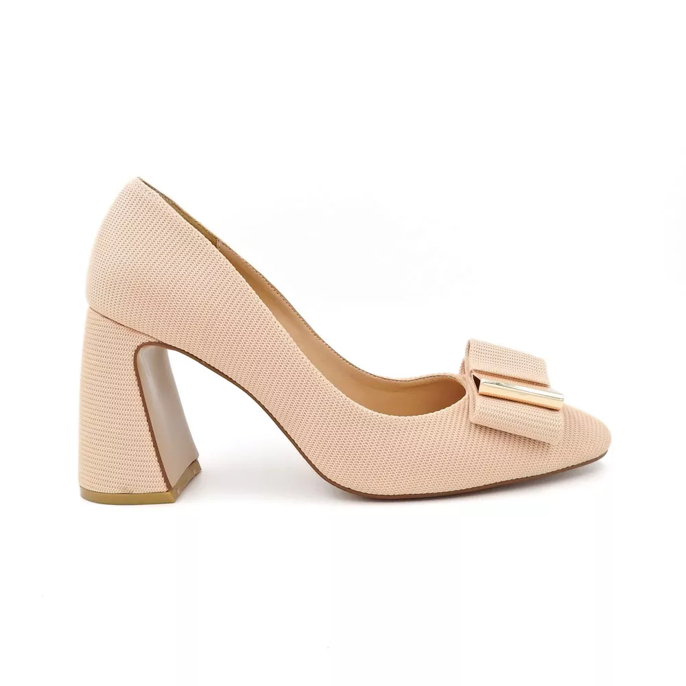 از نظر طراحی، فرم پنجهی کفش زنانه مجلسی کد 1361 بهصورت گرد و جمعوجور طراحی شده تا ضمن ایجاد تعادل بین راحتی و زیبایی، ظاهری ظریف به پاها ببخشد. بخش جلویی کفش با پاپیون طلایی، تضاد زیبایی با بافت ساده پارچه ایجاد کرده و این مدل را برای ترکیب با انواع لباسهای مجلسی، کتوشلوار زنانه و دامنهای رسمی بسیار مناسب کرده است.