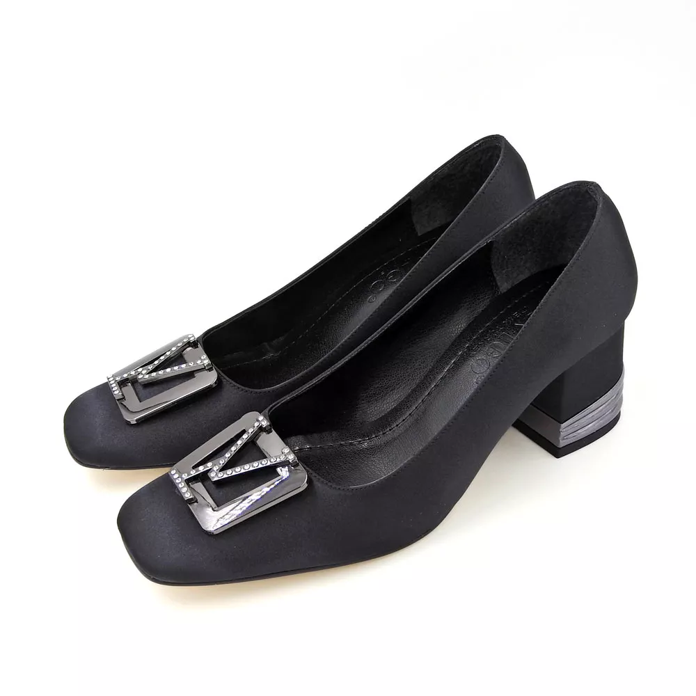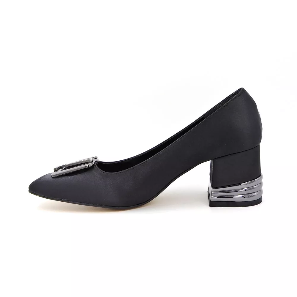 کفش زنانه مجلسی کد 1410 انتخابی عالی برای کسانی است که ظرافت پارچه ساتن را در کنار مقاومت و شیکی چرم مصنوعی و پایداری زیره داووس می‌پسندند.