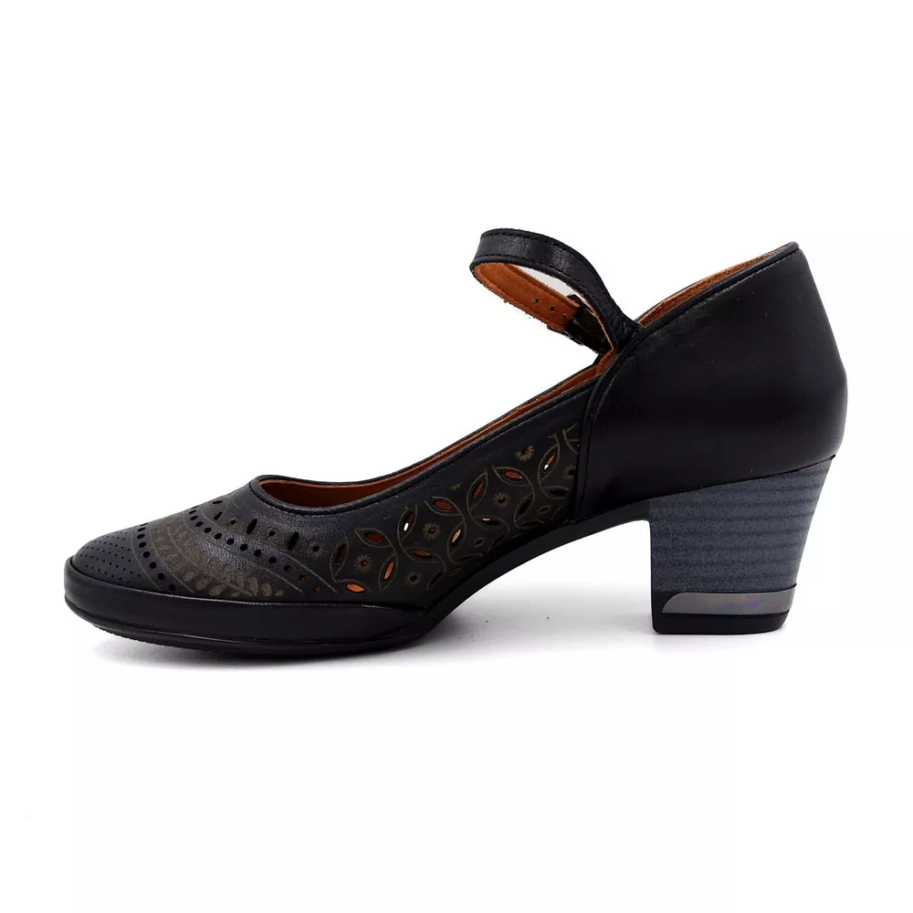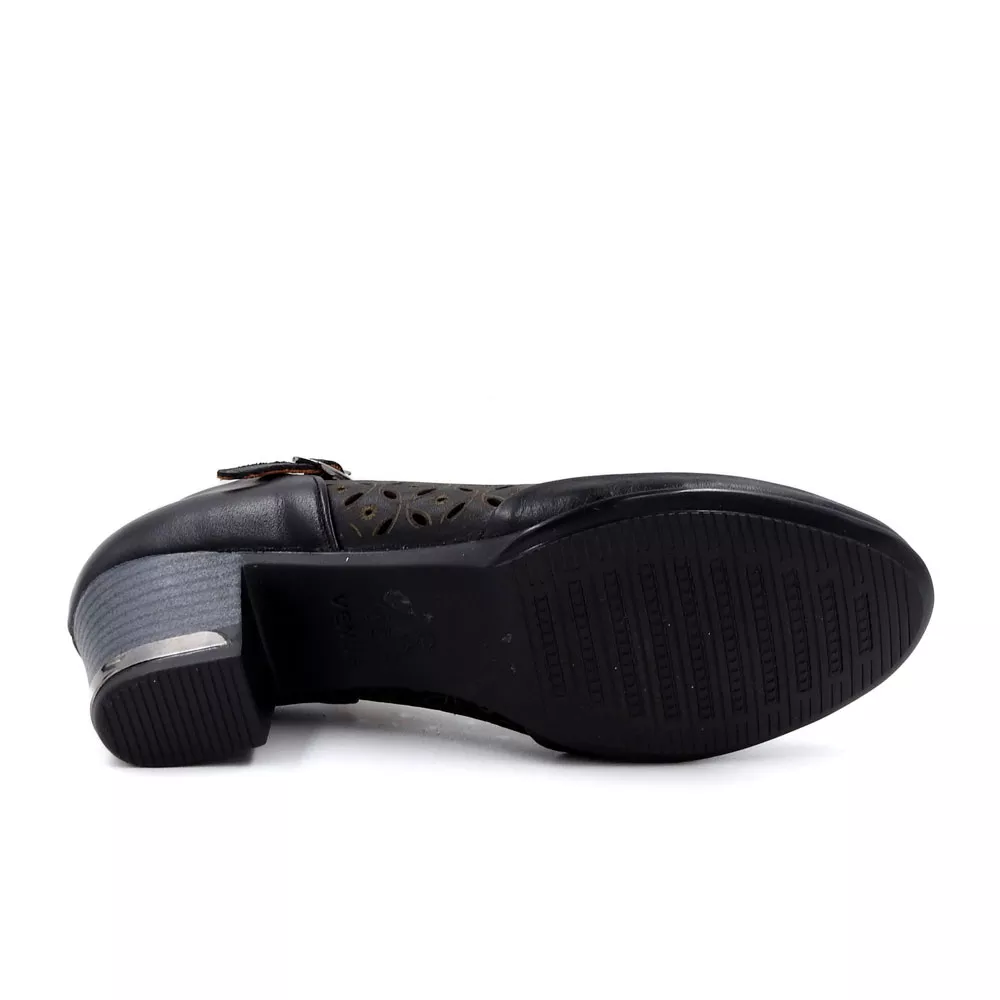 از نظر طراحی ظاهری، کفش زنانه کلاسیک کد 1197 تلفیقی از سادگی و وقار است. فرم پنجهی گرد و دوختهای منظم در بدنه، جلوهای کلاسیک و درعینحال کاربردی به آن داده است. در قسمت رویه، برشهای ظریف و دقیق به گونهای طراحی شدهاند که ظاهر کفش را از یکنواختی خارج کنند و به آن حس زنانه و رسمی ببخشند.
