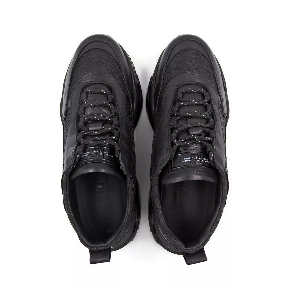 در تولید رویه این کفش از ترکیب چرم طبیعی و چرم مصنوعی استفاده شده است. چرم طبیعی به دلیل انعطاف‌پذیری، دوام بالا و قابلیت تنفس، راحتی بیشتری برای پا ایجاد می‌کند. در کنار آن، بخش‌هایی از چرم مصنوعی باعث افزایش مقاومت کفش در برابر خط و خش و همچنین حفظ فرم ظاهری آن در طول زمان می‌شود. این ترکیب هوشمندانه، هم کیفیت مناسب را فراهم می‌کند و هم قیمت را در محدوده منطقی نگه می‌دارد.