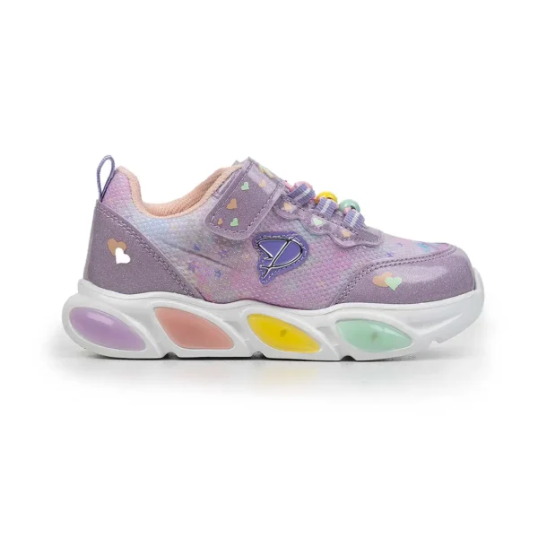 - ویژگی چراغدار: نورپردازی در زیره، هر قدم کودک را با یک درخشش همراه میکند. این ویژگی نه تنها برای کودک بسیار هیجانانگیز و تشویقکننده به حرکت است، بلکه در محیطهای کمنور، دید والدین نسبت به کودک را افزایش میدهد.